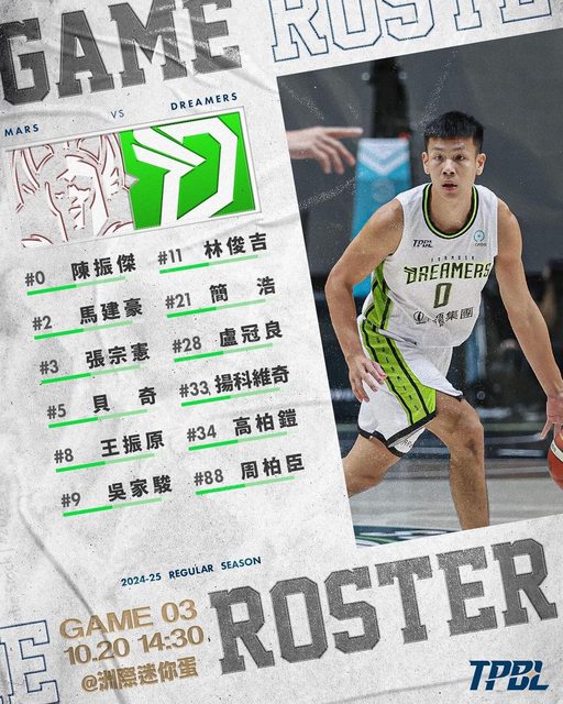 14:30|臺北台新戰神(客)vs 福爾摩沙夢想家(主) 本場賽事登錄名單