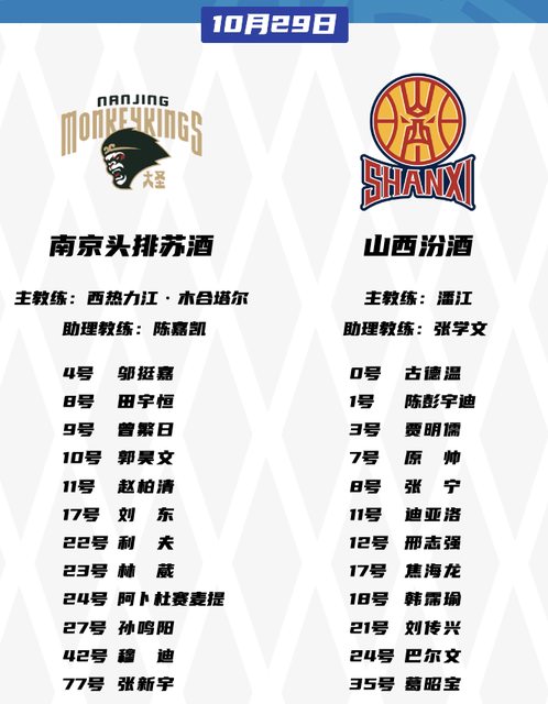 CBA 例行賽 10/29 賽程