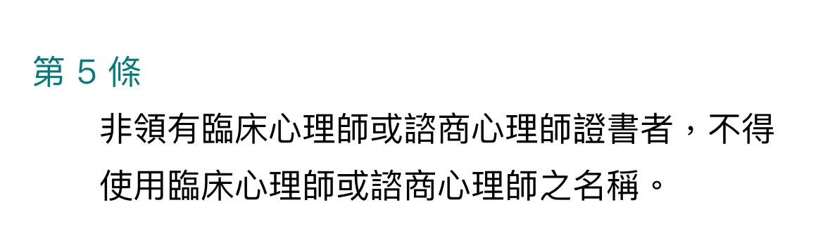 根據《心理師法》第五條,未持有臨床心理師或諮商心理師證書者不得使用相應職稱,日前所公布的這份名單恐已觸法,但問題可能出在體育署並無明確定義,以致中華民國籃球協會會錯意,認為運動心理諮詢師及等同於諮商心理師。