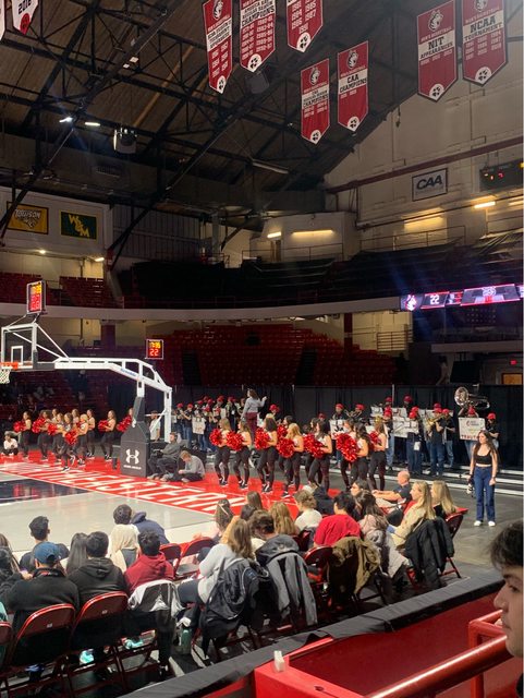 主場的氛圍感覺比在哈佛主場要好一點,有一個管樂隊隨時在旁邊吹奏,還有舞蹈隊跟啦
