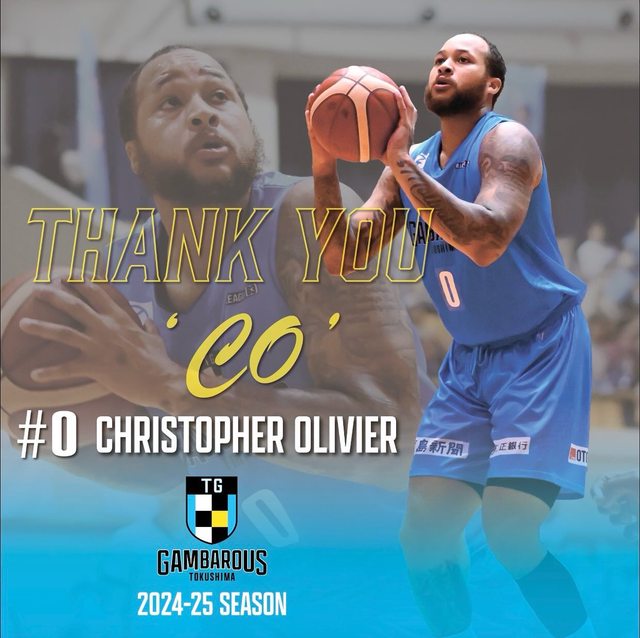 本季效力日本B LEAGUE第3級德島Gambarous的洋將Chris Olivier,近日被釋出後,就近