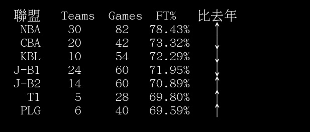 推 tnfsh01008 : 就算NBA平均應該也78成而已吧 11/25 11:38