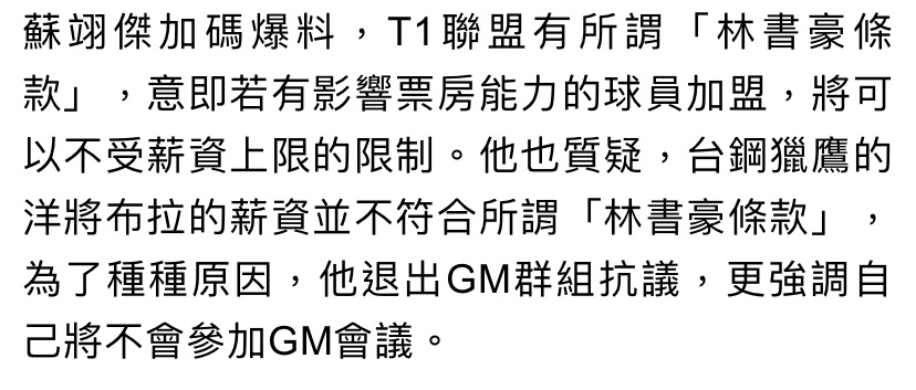 → WetBro : 請問T1規章哪裡有林書豪條款 我想研讀一下 12/01 20:03