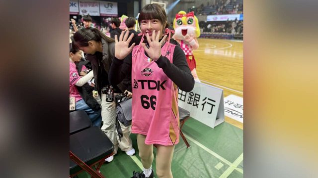 中信兄弟人氣啦啦隊成員峮峮趁職棒休季期間,應邀前往日本職籃B聯盟「一日應援」,