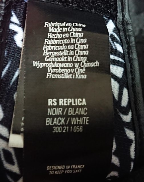 上面標示著產地為中國,另外一個標籤則是材質表。