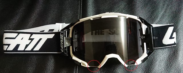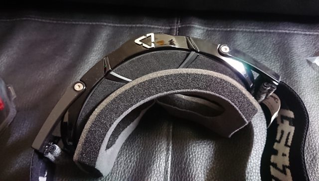 風鏡上緣,鏡框上有 Leatt 的浮刻 logo。