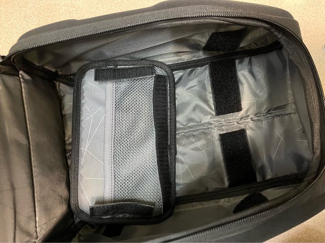前面分割空間放濕紙巾、補胎包組、防雨罩