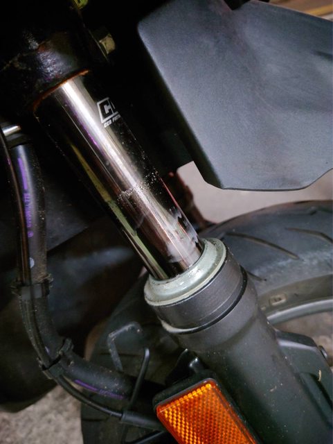 請教各位大大,換完避震大約使用3個月左右出現漏油,前避震怎樣的情況下會漏油成這 樣?一團油就這樣跑出來? 店家是說騎乘路況很差,內管有傷到。 平常只有上下班跟跑偶爾楊金(平面道路) 確定是漏油,兩邊避震遇到坑洞反應不一樣 ————-更新————— 白色那團? 應該是乳化作用!水跑進去跟油混合在一起的結果! 前避震安裝4個月後開始漏油,使用大約5000公里左右 土封照片看起來沒有很密合? 沒有當初裝好的照片無法比對 只能說比較倒楣,內管受損造成土封和油封受損。 抱怨文 避震使用約4個月左右5000多公里,內管就受損,TMD內管紙糊的喔! 土封跟油封是裝飾品嗎? 漏油就算了,水竟然可以跑進去裡面?太誇張了! 感謝各位大大幫忙! https://i.imgur.com/K89uozm.jpg