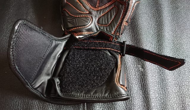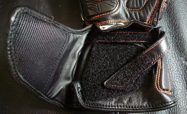 手套的固定方式,使用常見的魔鬼氈與手腕綁帶。