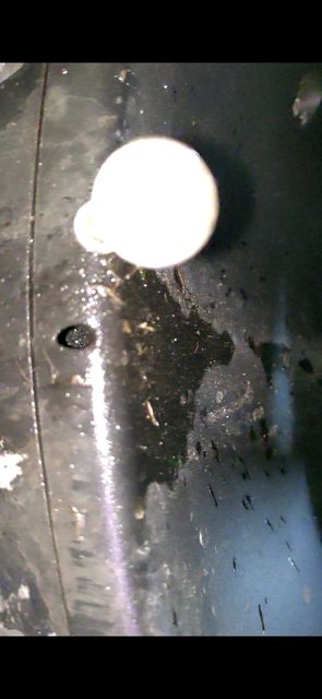 下以為是不是車底盤輾到什麼東西,回家開燈來看,發現車子底盤下方有一隻突出來的螺