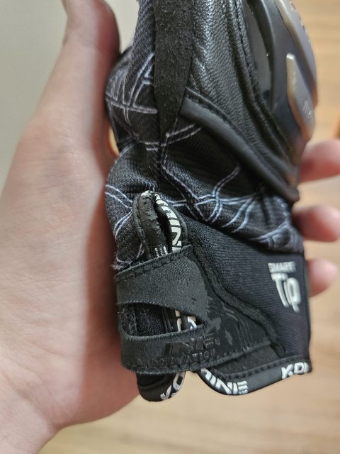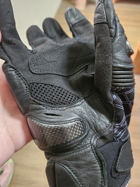 右手羊皮部分裂開,但沒變大,我感覺是卡夢滑塊的邊緣造成