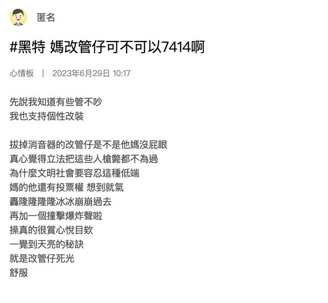 → Jamne8937: 改管然後消音,這樣是安靜還是不安靜? 112.104.10.171 06/30 14:52