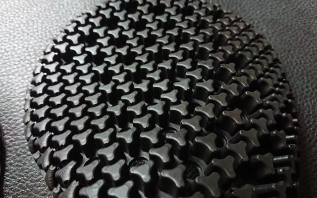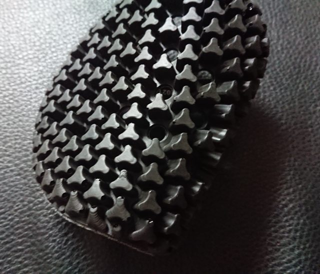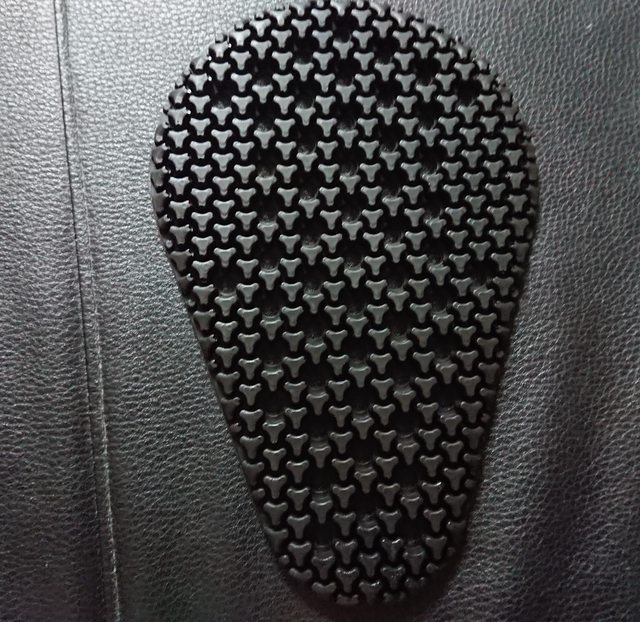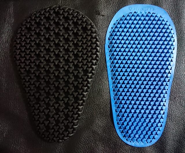 1. 凸面朝內可以減少穿戴時單點把護具間的顆粒間距撐開。