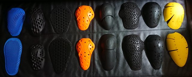 上排都是肩膀護具,下排則是手肘護具,從左至右分別為對應表格上到下。