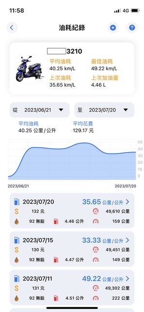 油耗平均40km/L持續新增,之後還是繼續用4-X就好了(結論)。