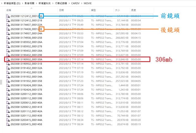 相較於我其他使用的行車紀錄器,5分鐘影片450mb~670mb都有