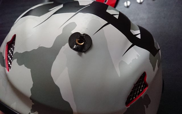 可以看到前額這有明顯的線條, 左右則是前進氣口, 中間黑色墊片是黏死在帽簷鎖點上的。