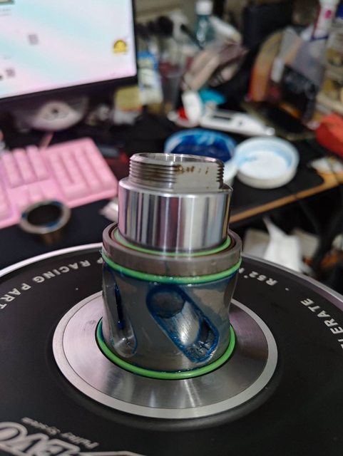 蓋上彈簧座後 開關開閉盤數次 再打開清除多餘油脂