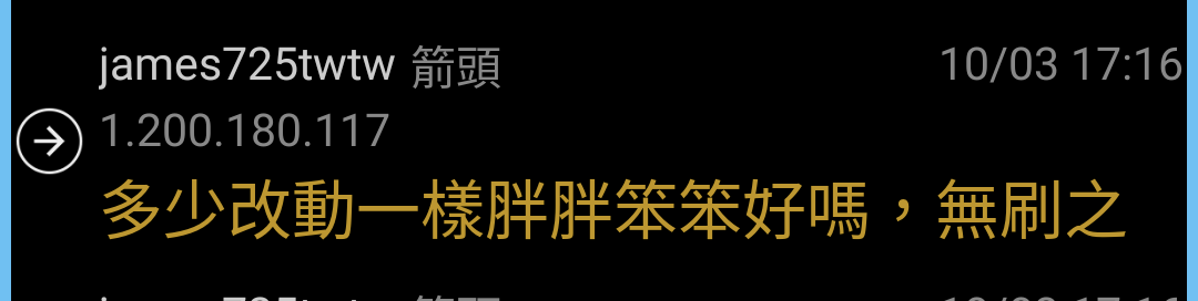 → cjkvirus: 迪爵了 114.27.32.9 10/04 10:58