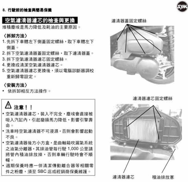 5. 空氣濾清器濾芯更換後,須以電腦診斷器調校 重新歸零設定