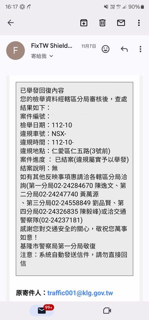 → VL1003: 對方車牌號也不給補件,然後環保檢舉要寄27.53.240.148 12/06 10:02