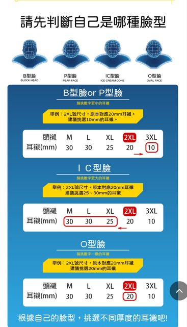 說什麼B臉型跟P臉型要隨你選的尺寸去遞減耳襯尺寸