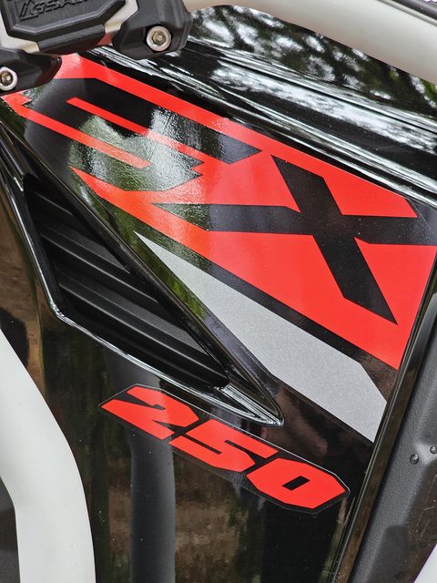 車側貼著大大的SX250貼紙,當有人看到車子太帥搭訕你的時候就可以很方便的指指