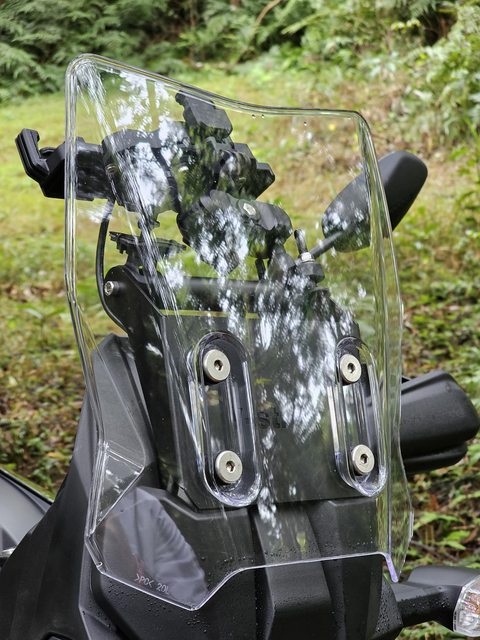 原廠風鏡,小弟178 cm,坐得筆挺一點大約會在下巴附近就感覺到風,擋風的效果僅