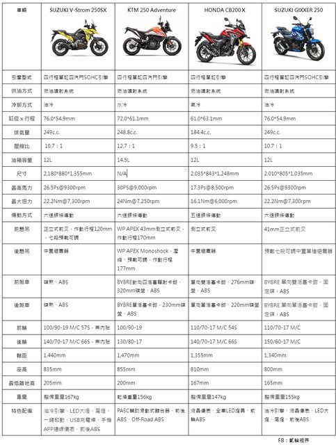 不同架構的GIXXER系列。以上資訊不保證完全正確,但其實以價位來看,KTM、SUZUKI、
