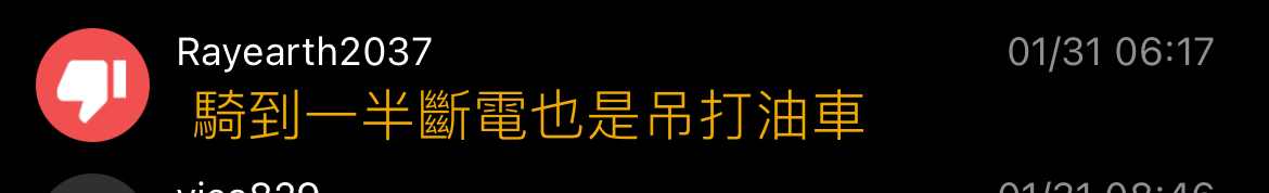噓 Rayearth2037: 騎到一半斷電也是吊打油車 114.46.120.83 01/31 06:17