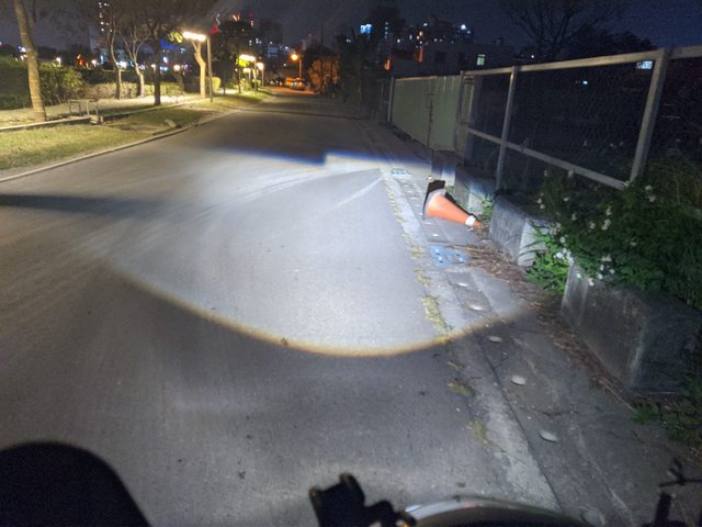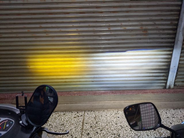 遠燈路上光型,感覺為了遠光供電,原本近燈發光燈芯有被降功率