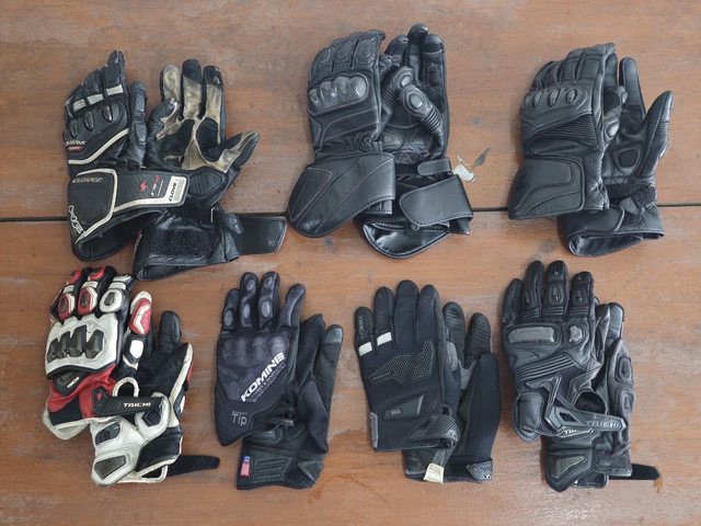 最左邊兩雙長短手套是退役的,右邊的是我平常會輪著用的