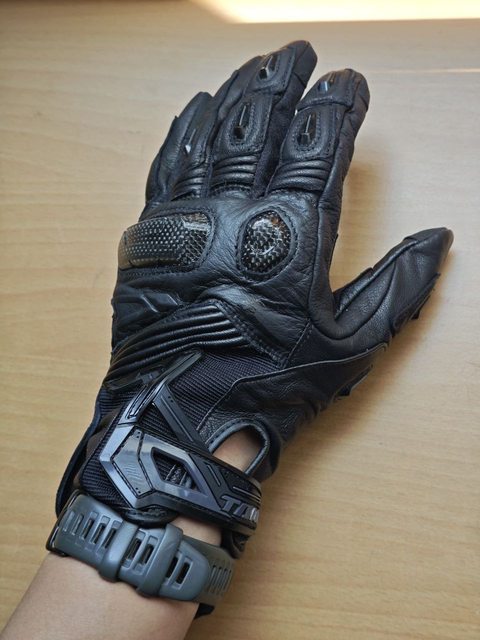 使用了88%的真皮而且拳眼+手指+短護腕都是碳纖護具,掌心更是使用了Knox的滑塊