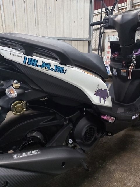 我:妳哪來的自信……不要再貼了,沒地方貼了啦,空濾跟傳動蓋就別換卡夢水轉印了,