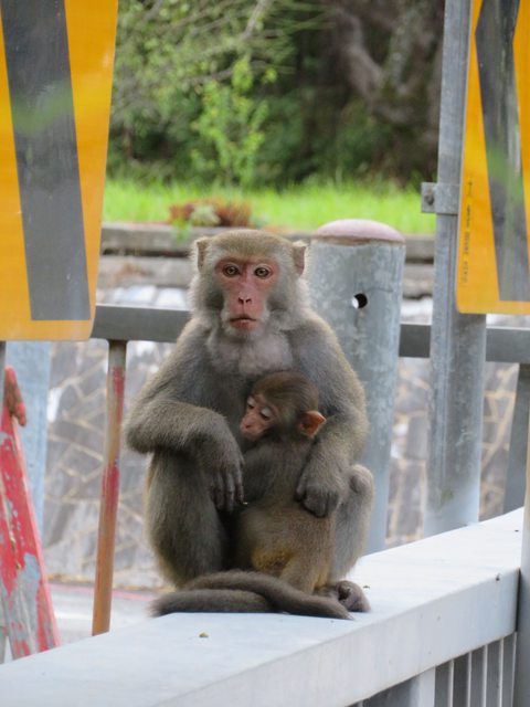 我用相機拉望遠拍的啦XD! 在天祥(地震後商家都歇業) 等候管制站開放時幸運拍到~ 野生沒被餵食過所以跟柴山那群不同等級! 附上影片!