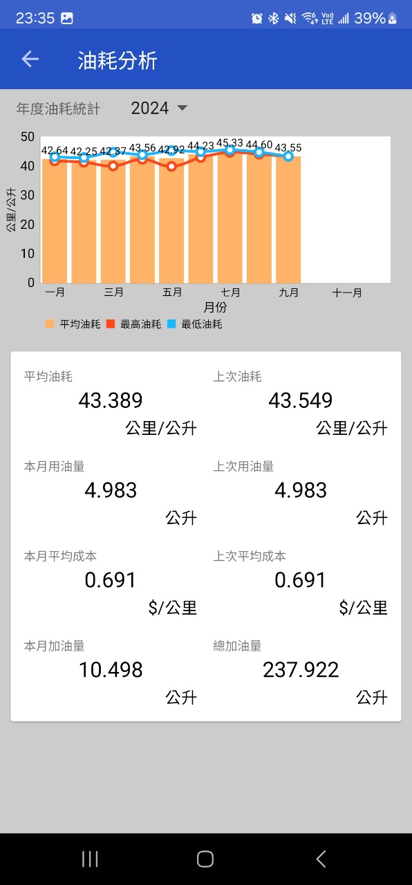 通常每桶油油耗落在38~42km/L