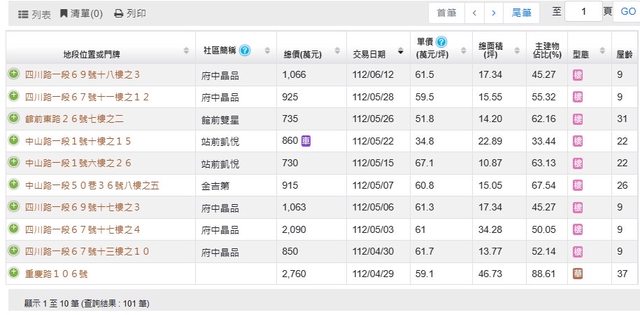本物件附近地址實價登錄 :