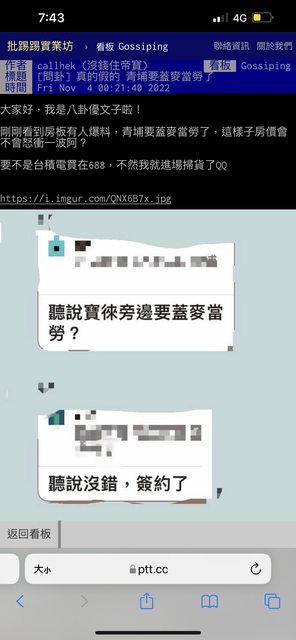 → gothmog: 是啊 青埔一堆人 幫麥當勞開店 ,寶錸那個也是傳言 09/17 10:39