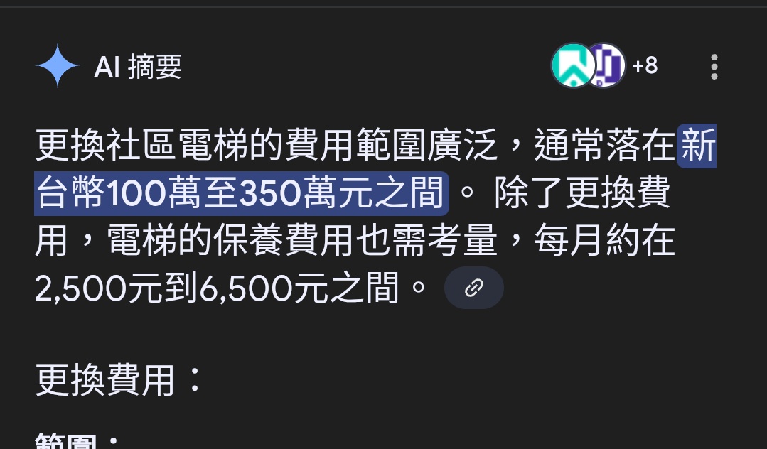 → ceca: 對喔,裝一台新電梯和換電梯價格不一樣. 06/10 00:30