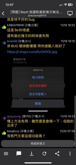推文 (用圖示標記"推" "噓" "鍵頭" 原PO跟本人有各別醒目標示)