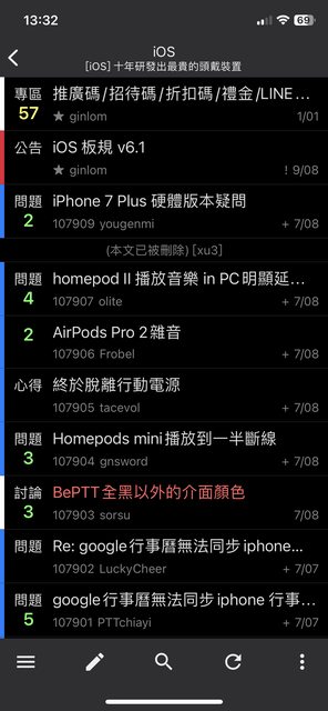 文章列表 (鎖文紅色,未讀藍色,已讀白色,已讀內容有更新為黃色)