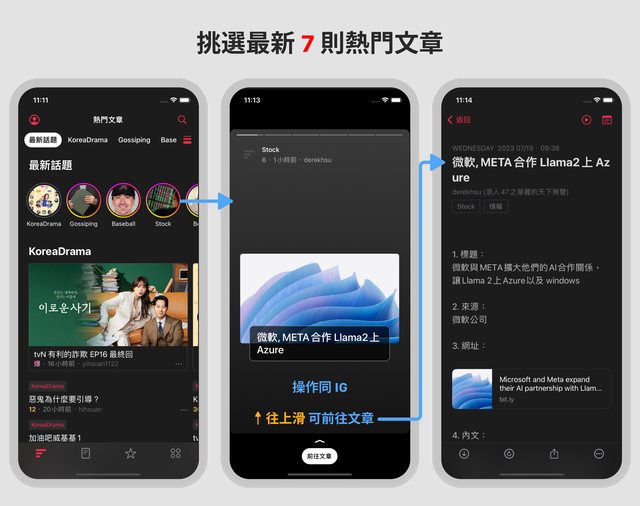 最大的新增功能為採取 IG 限動的方式來觀看熱門文章