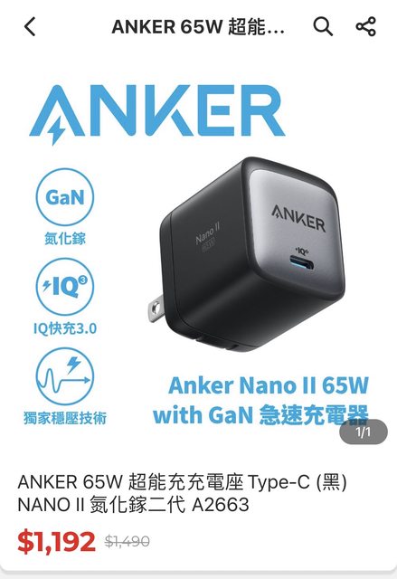 推 ckw : 我買Anker多孔的,只有1孔怕不夠用,多孔建議買65以上 08/02 12:14