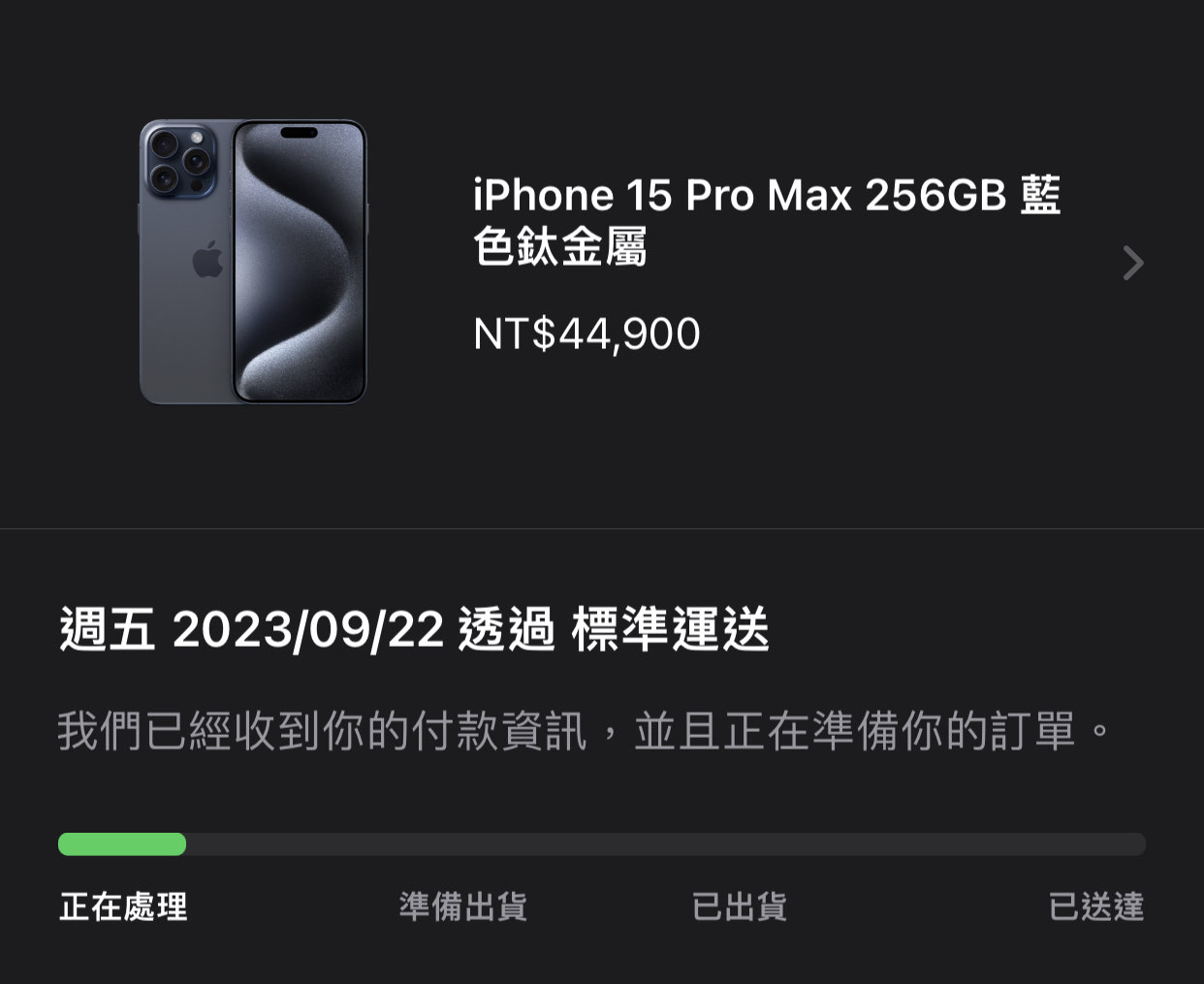 推 c14646780 : APP已下單 22號送達 09/15 20:10