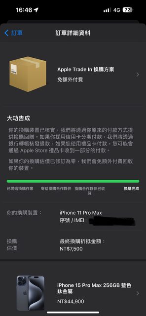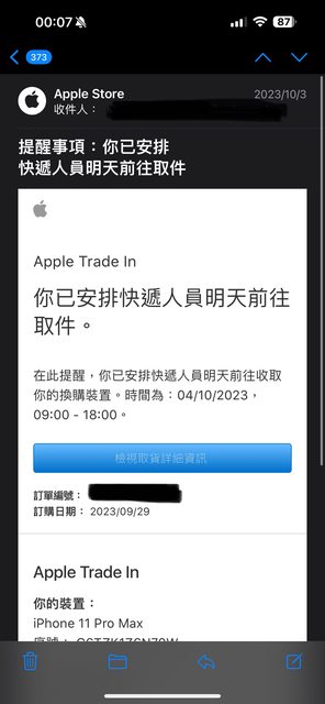 Apple stroe顯示換購夥伴已收貨檢測中