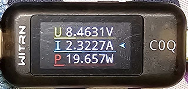 螢幕開啟時充電電流會稍微上升,可以從充電器輸出電壓電流圖表中的紅色曲線看到電流