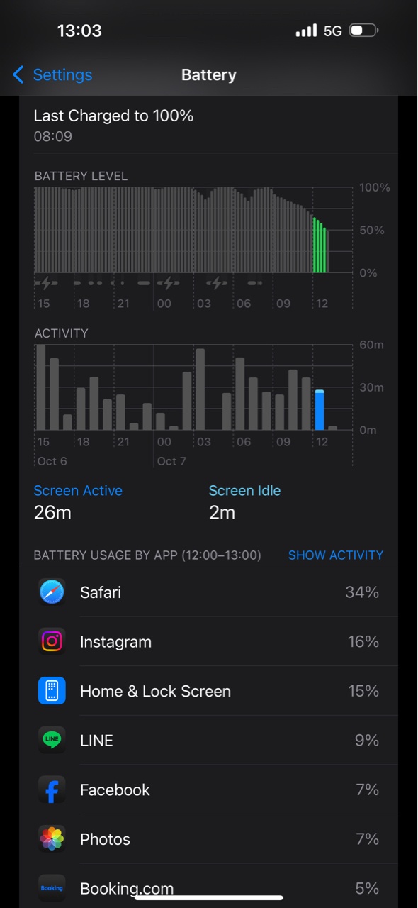 → linj7041: 到現在螢幕時間只用了50分鐘就耗了13%。沒有玩遊戲,用 10/07 10:09