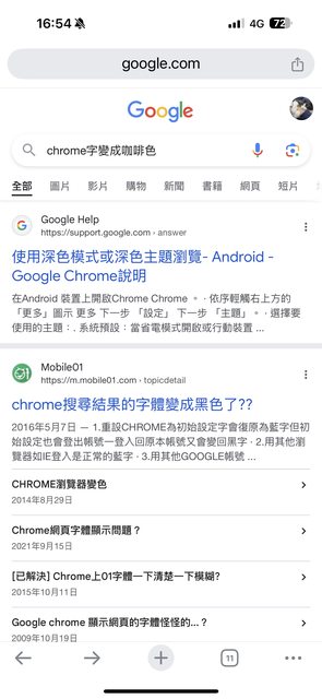 請問各位大神,最近發現我的16 promax 的chrome搜尋外觀深色的字色變成咖啡色,可是淺