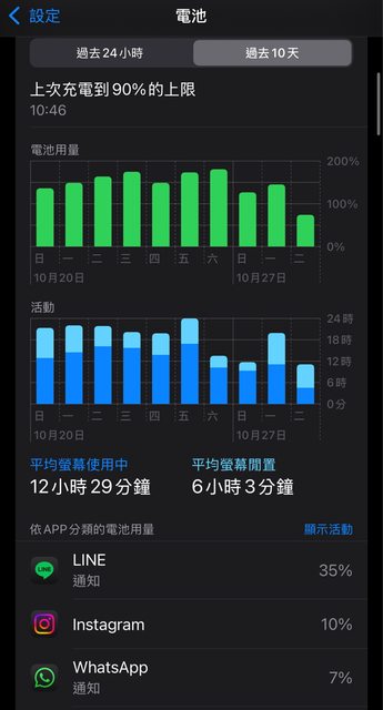 而觀察電池使用 Line也大幅的降低比例了
