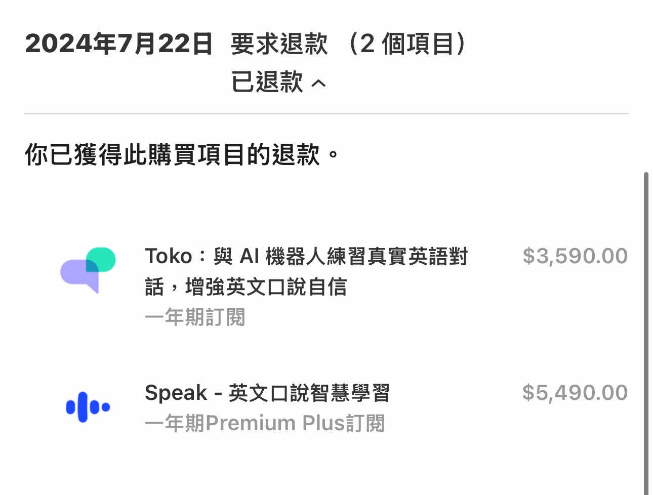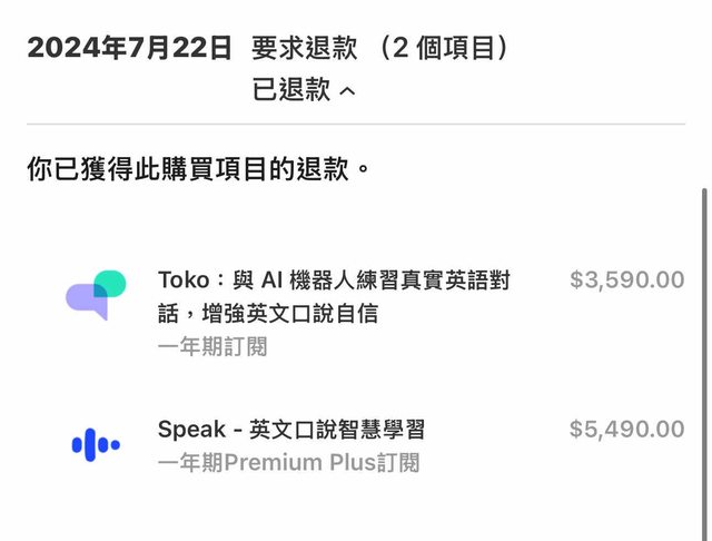 也說到我也知道並非所有APP都不退費,所以真的並非蘋果不願意處理
